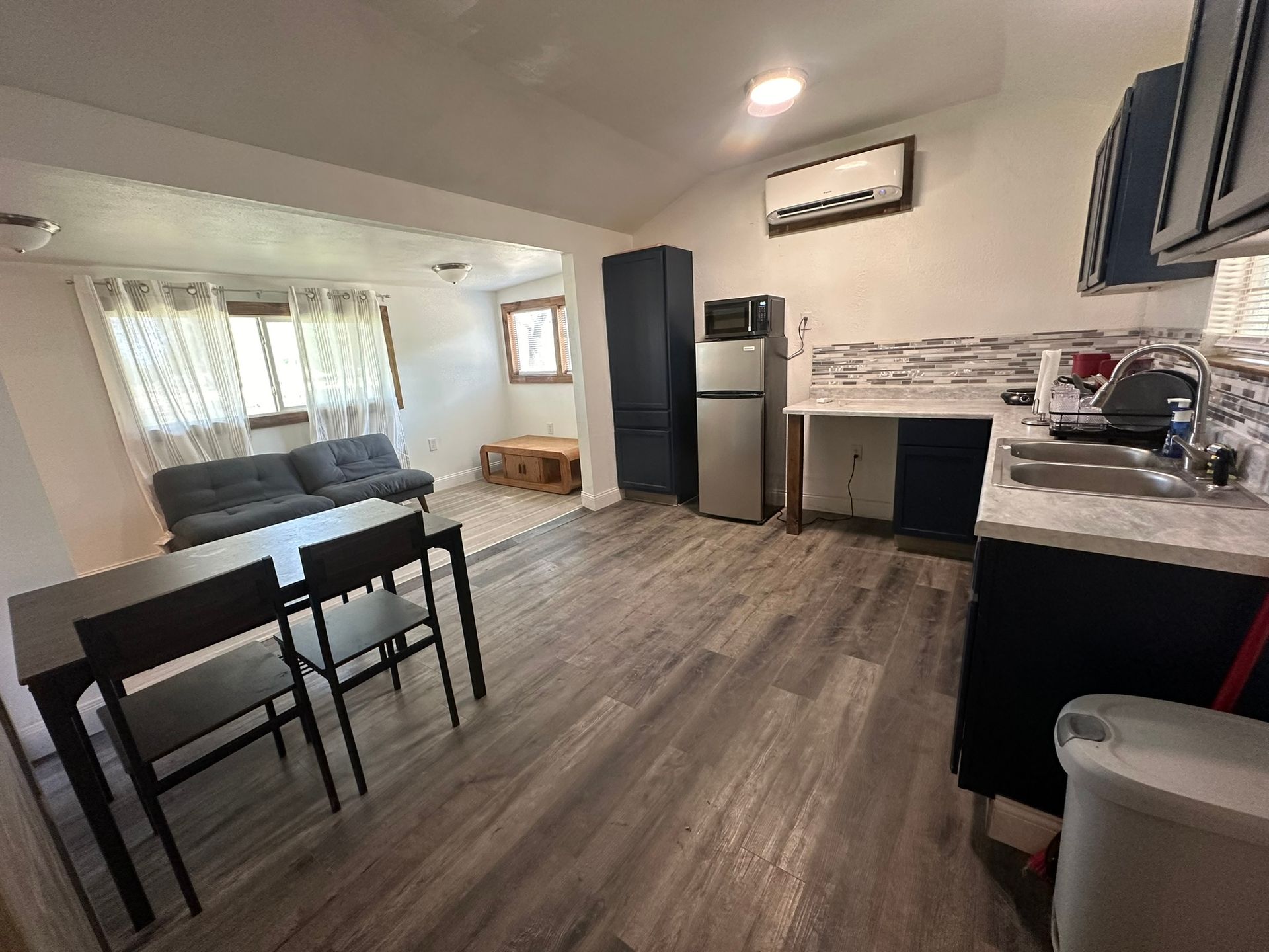 Our Green Cabin is a one bedroom with a full bath and a kitchenette. Relax on the porch and grill dinner after a great day at CreeksideMX. $150 per night (cleaning fee included).
